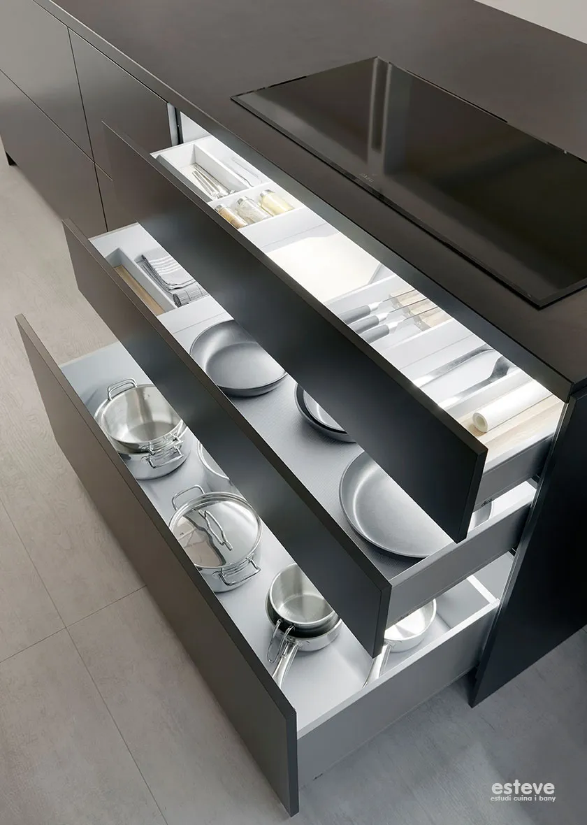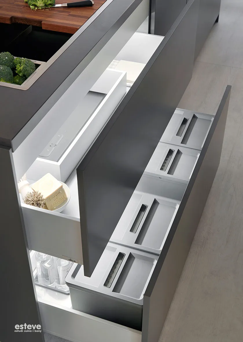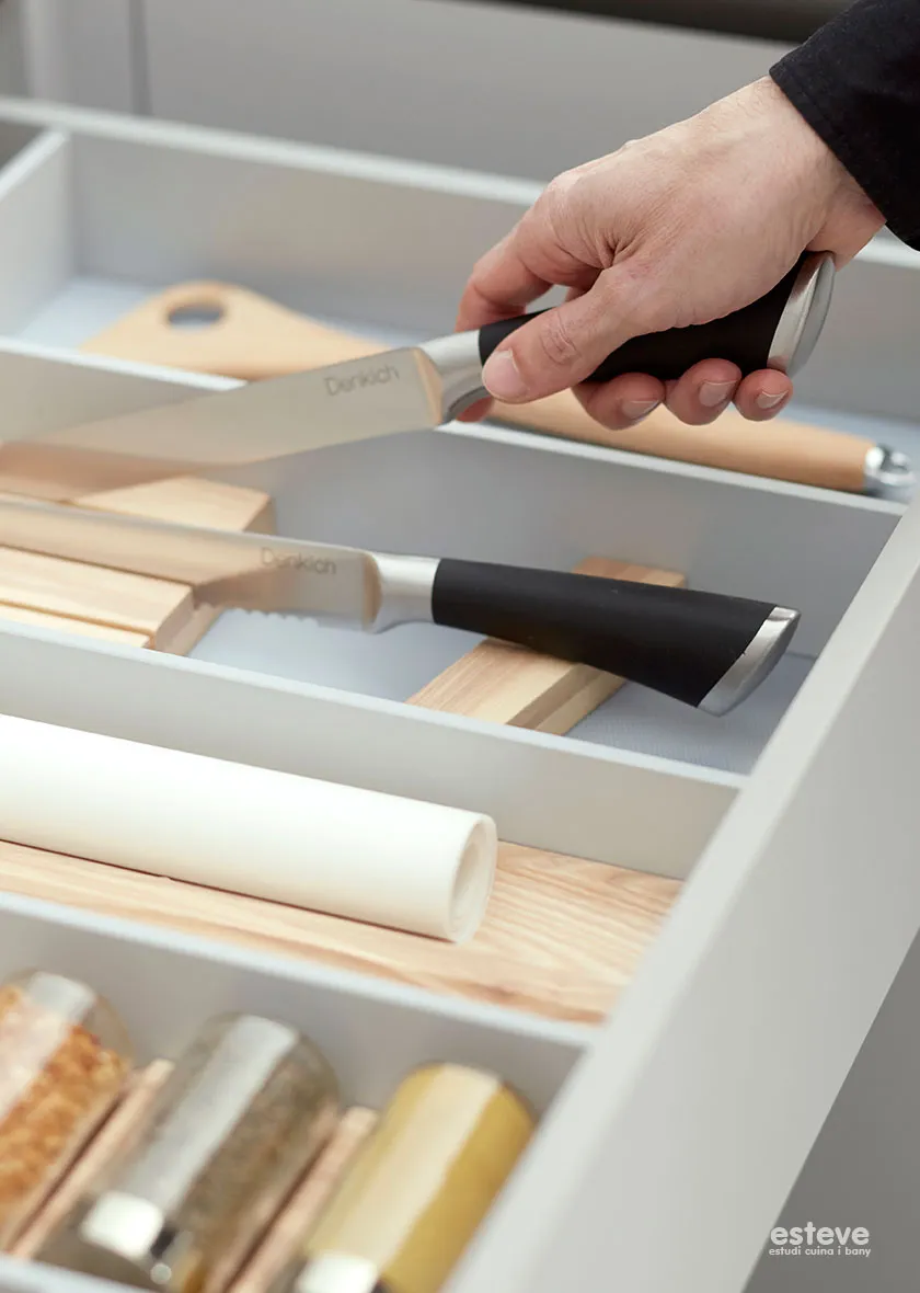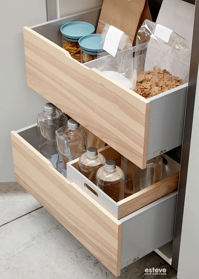 Tots els accessoris i l'equipament de la cuina contemporània de Dica poden integrar-se, aportant així a la sèrie tota la funcionalitat d'una cuina actual.