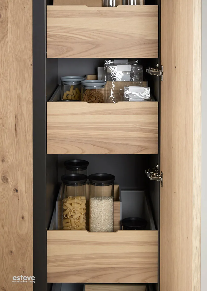 Tots els accessoris i l'equipament de la cuina contemporània de Dica poden integrar-se, aportant així a la sèrie tota la funcionalitat d'una cuina actual.
