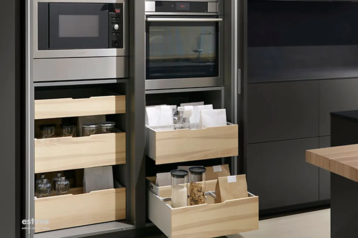 Ideals per guardar els objectes d'ús diari i accedir ràpidament a ells, disposes de diferents sistemes d'obertura per accedir als mòduls alts: portes batents o portes abatibles que es pleguen per facilitar l'accés. El perfil d'obertura o el sistema electrònic permeten col·locar els mobles sense tirador. També hi ha disponibles diferents tipus d'il·luminació depenent de l'amplària del mòdul i de si les baldes interiors són opaques o de vidre.