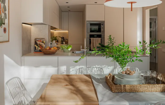 Cocina diseñada para convivir con el espacio de día, planteada desde la funcionalidad y la integración con el comedor.